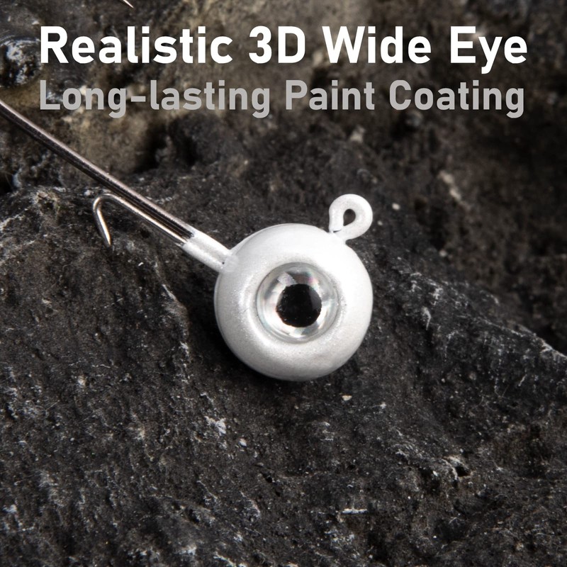 Dr.Fish Paquete de 10 plantillas de ojos redondos, plantillas de agua salada, cabezales de anzuelo holográficos 3D, cabezales de pesca de bola, anzuelos de acero al carbono, anzuelos de bajo en la costa, cabeza de pompano Striper Halibut 1/16 oz