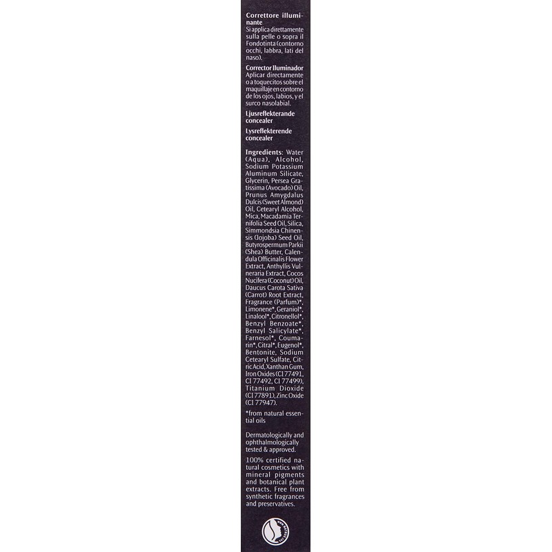 - Under eye translucent concealer that softens dark shadows with light reflecting mineral pigments.