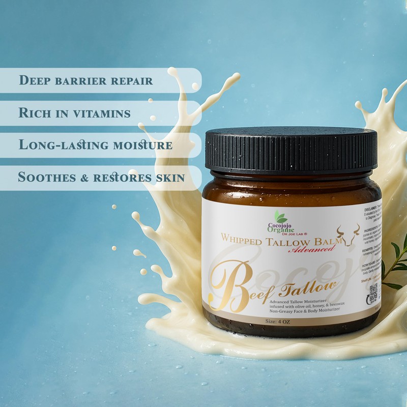 Dr Joe Lab COCOJOJO Whipped Tallow Balm Advance – Micronized Grass-Fed Tallow Moisturizer with Jojoba, Argan, Shea Butter, Baobab & Vitamin C – Whipped Tallow Cream for Face & Body Hydration (4 oz)