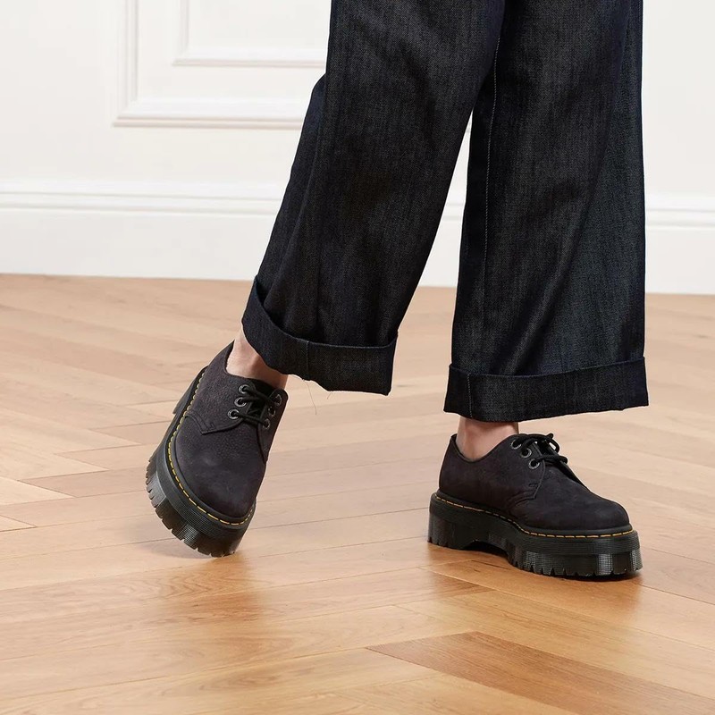 - Keep that girlish flare in your look with the Dr. Martens 1461 Quad II oxford.