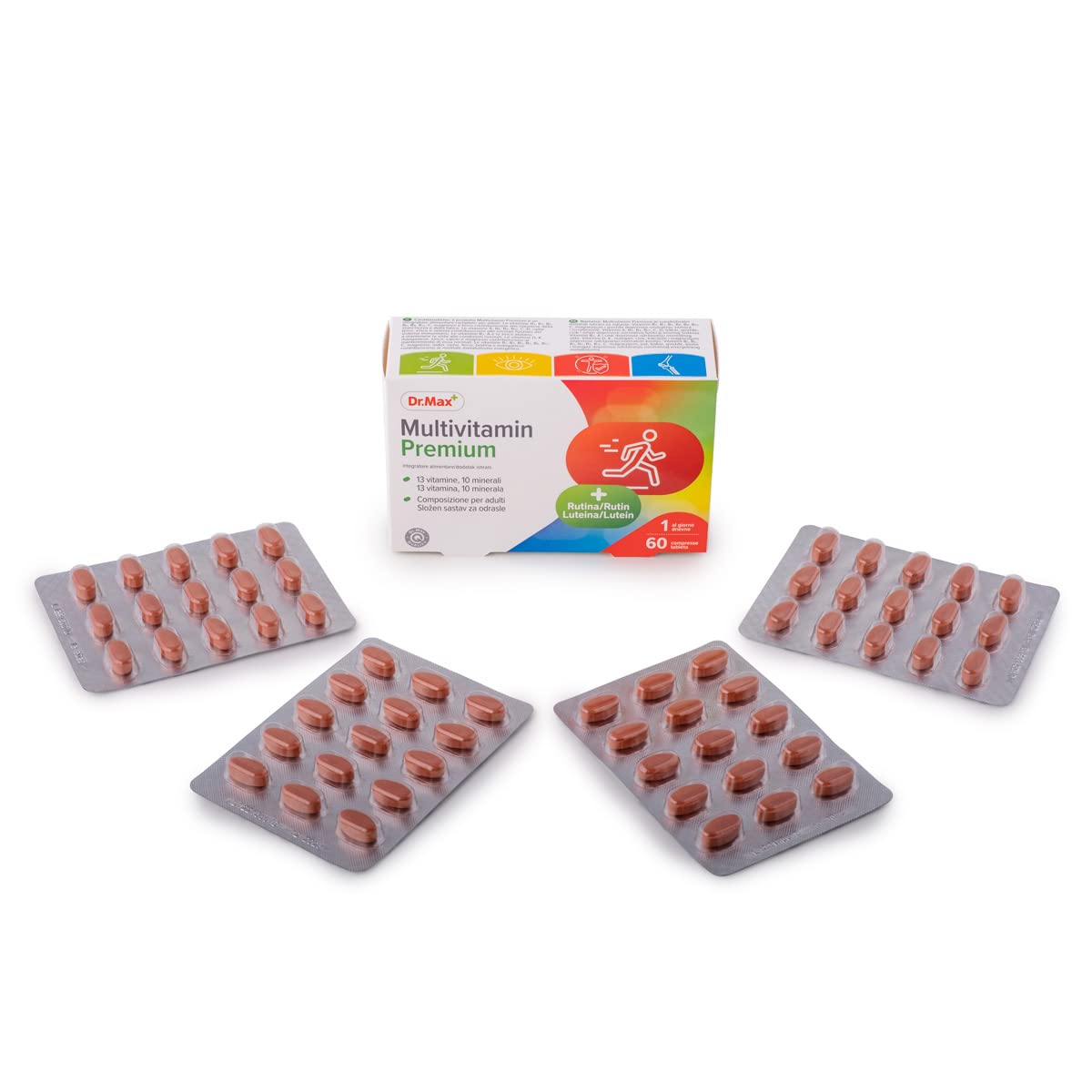 - ✅ DR.MAX - Dr.Max Multivitamin Premium is a supplement that combines 25 ingredients in a single product including 13 minerals, 10 vitamins, Rutin and Lutein. Minerals such as iron which promotes cognitive abilities, together with the simultaneous action of vitamins B3 and B5, useful for the release of energy and folic acid, important for the good functioning of the nervous system, make the sensations of fatigue more tolerable both physical and mental
