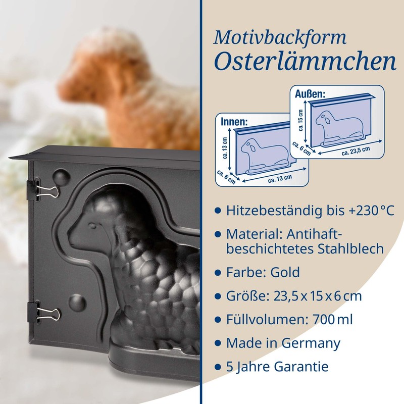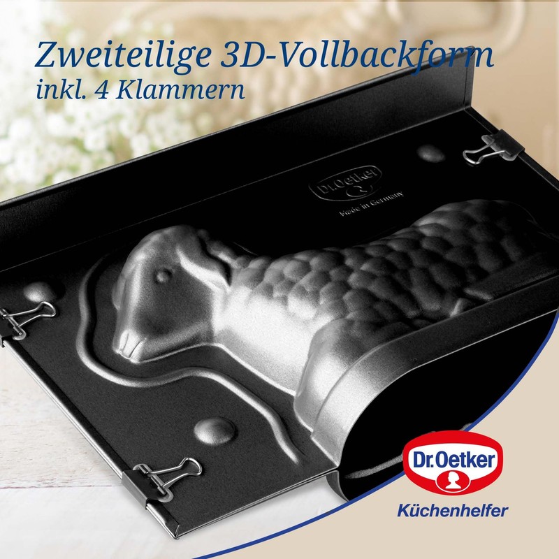 • Box contents: 1 x lamb full baking mould (27.5 x 15.5 x 7 cm) – best quality from Dr. Oetker