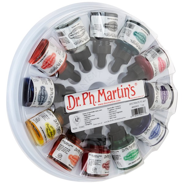 Dr. Ph. Martin's Spectralite Private Collection Liquid Acrylics (Set 1) Acrylic Paint Set, 1.0 oz, Set 1 Colors, 1 Set of 12 Bottles