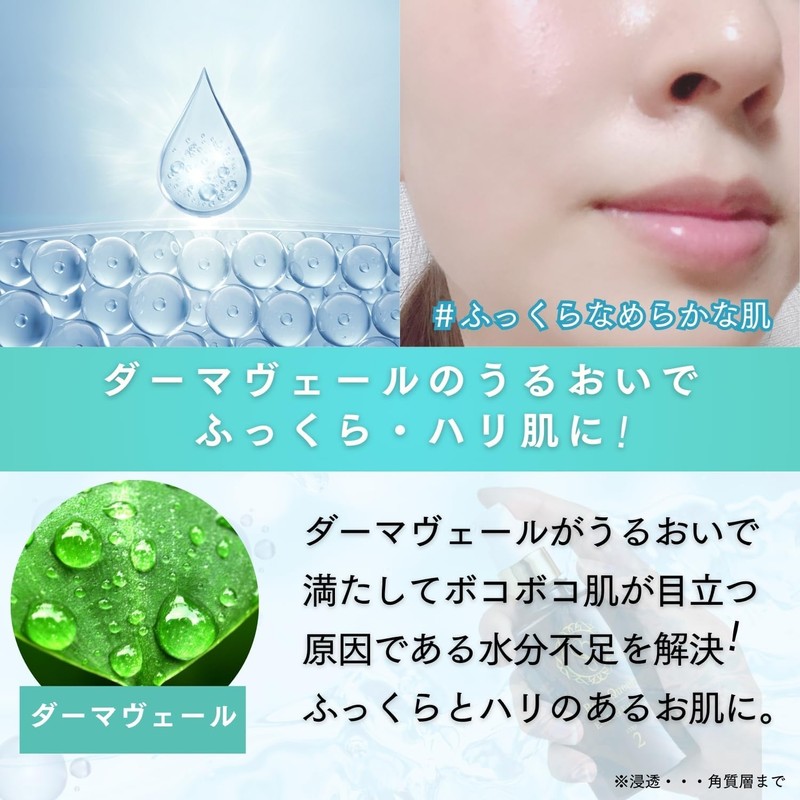 Dermaveil also solves the lack of moisture in the skin that causes bumpy skin, by retaining moisture within the skin, creating plump, firm skin.