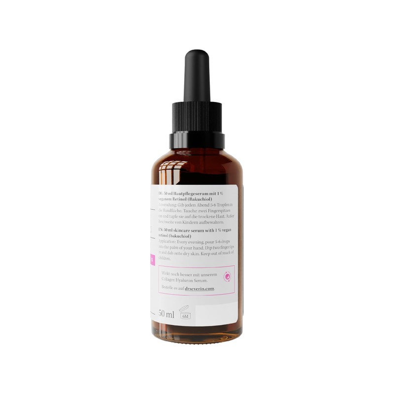 Dr. Severin Dr. Severin 1% Bakuchiol Vegan Retinol Serum Ultra 50 ml I Gesichtsserum mit pflanzlichem Retinol, Vitamin E, Vitamin F, Marula-?l, Avocado-?l I Anti-Aging I minimiert feine Linien und Poren I Vegan
