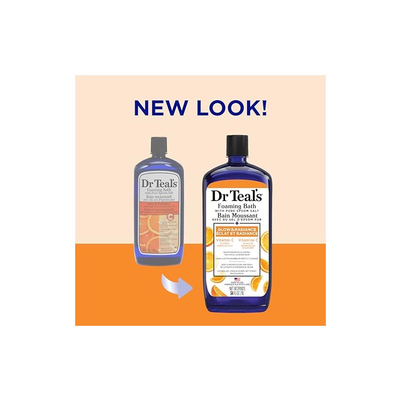 Dr Teal's Dr Teals Foaming Bath with Pure Epsom Salt, Glow & Radiance with Vitamin C & Citrus Essential Oils, 34 fl oz (Packaging May Vary)
