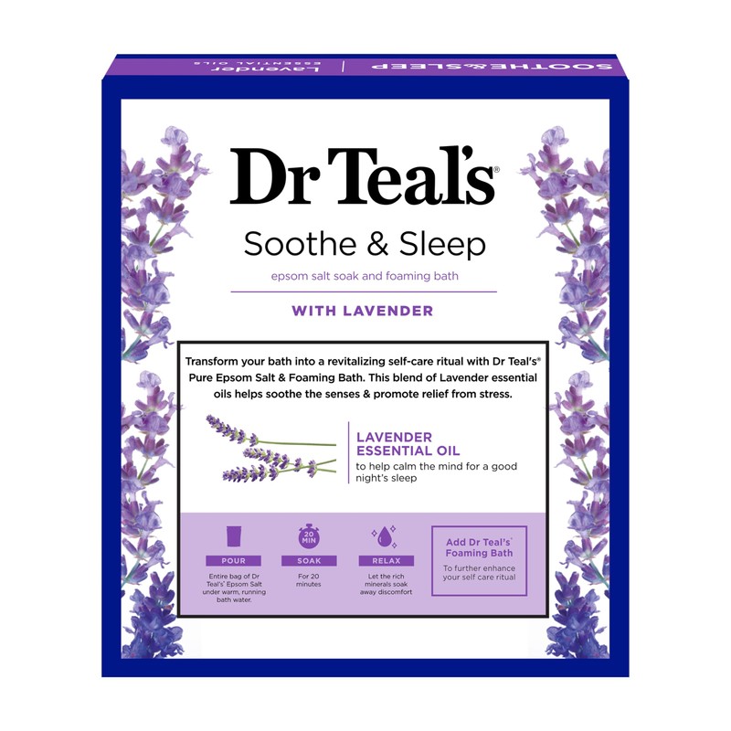 - Dr Teal's Lavender Essential Oil Sampler Set combines two luxurious bath products: Lavender Essential Oil Epsom Salt and Lavender Essential Oil Foaming Bath.
