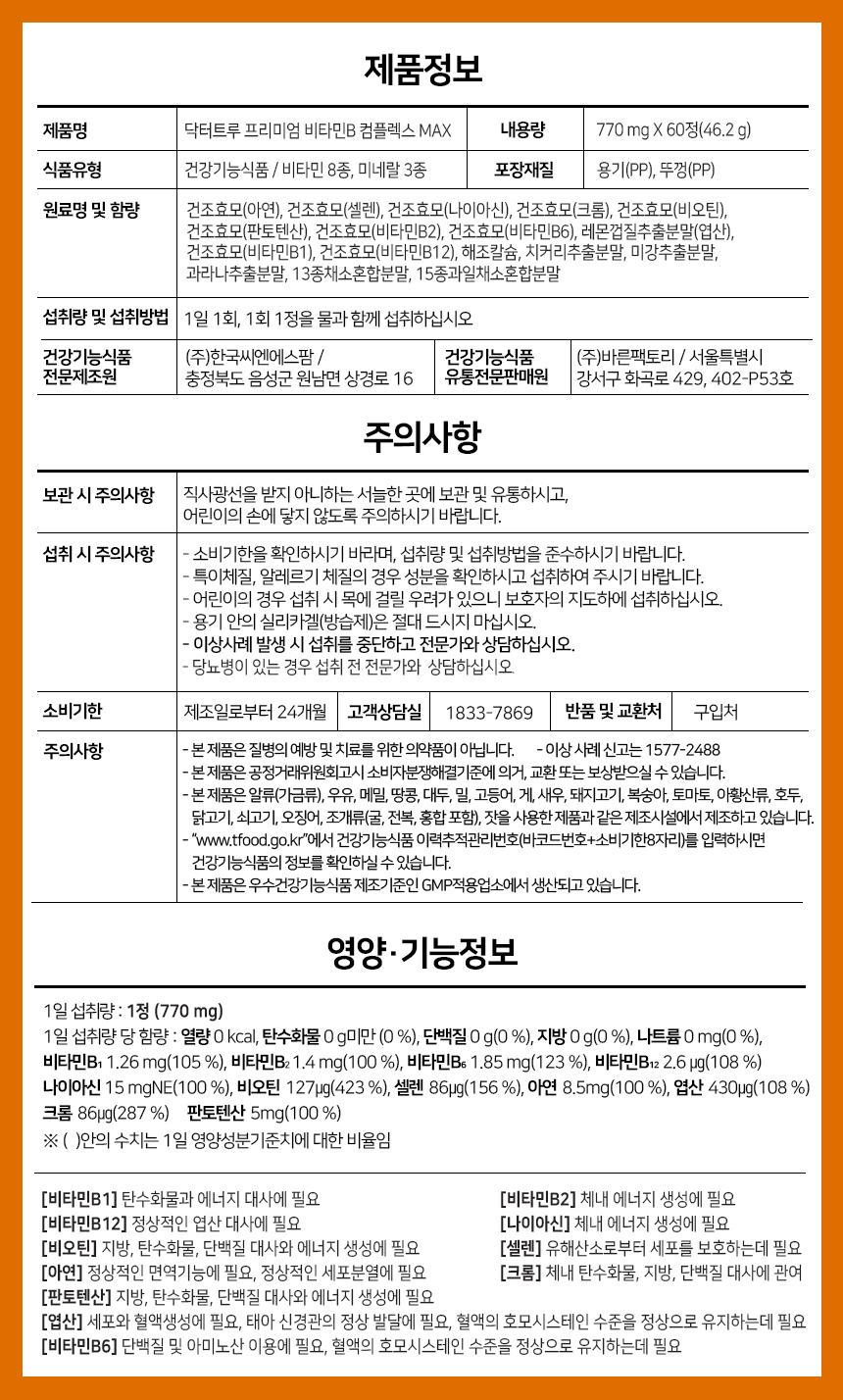 닥터트루 프리미엄 비타민B 컴플렉스 3개