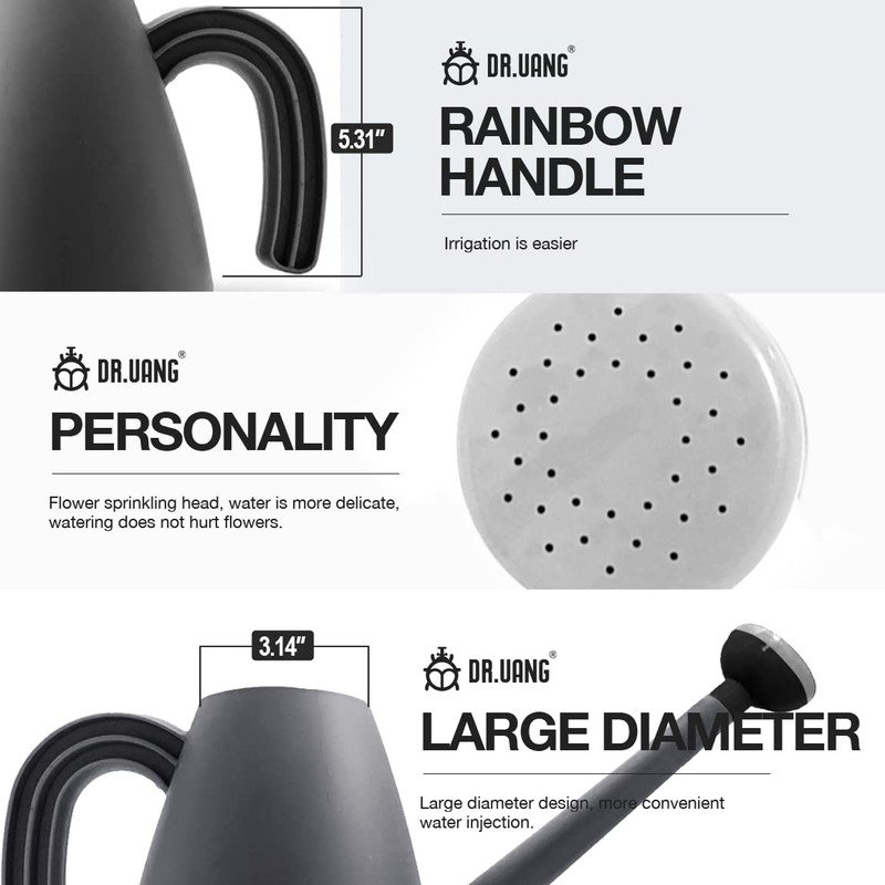 - [Modern Design, Shape and Color] Dr. Uang 2.0L indoor watering can is functional and decorative,the nordic design makes it so lovely, it's not only convenient for house plant watering, but also can be left out on a shelf or cabinet like decorations.