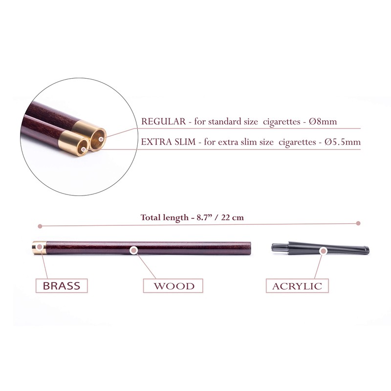 Dr. Watson - 22 cm extra langer Zigarettenspitze aus Holz, Audrey Hepburn-Stil, Handgefertigt, Glatt, wahlweise in Regular oder Extra Slim Größe (REGULAR)