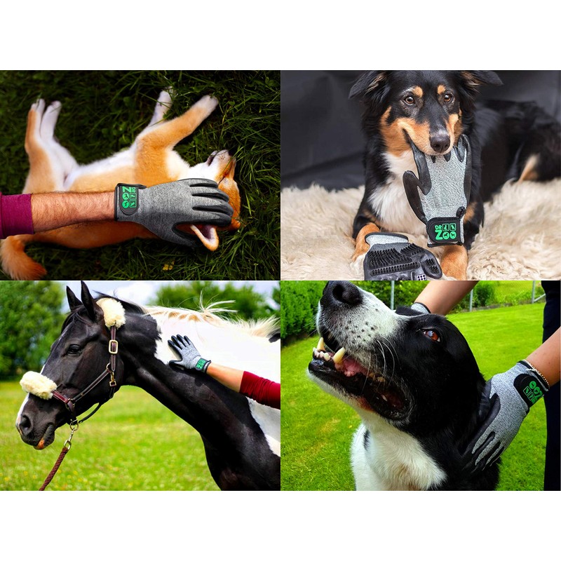 Dr. Zoo Professional grooming gloves; for any pet with short, medium and long hair; can be used as a dog/cat/horse brush or curry comb; grooming glove for removing cat/dog hair