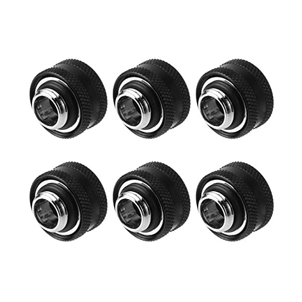 Dracaena 6 pack G1/4" thread to 16mm OD hard tubing compression fitting with sealing rings for rigid acrylic tube for pc water cooling system ,Black