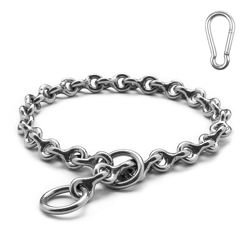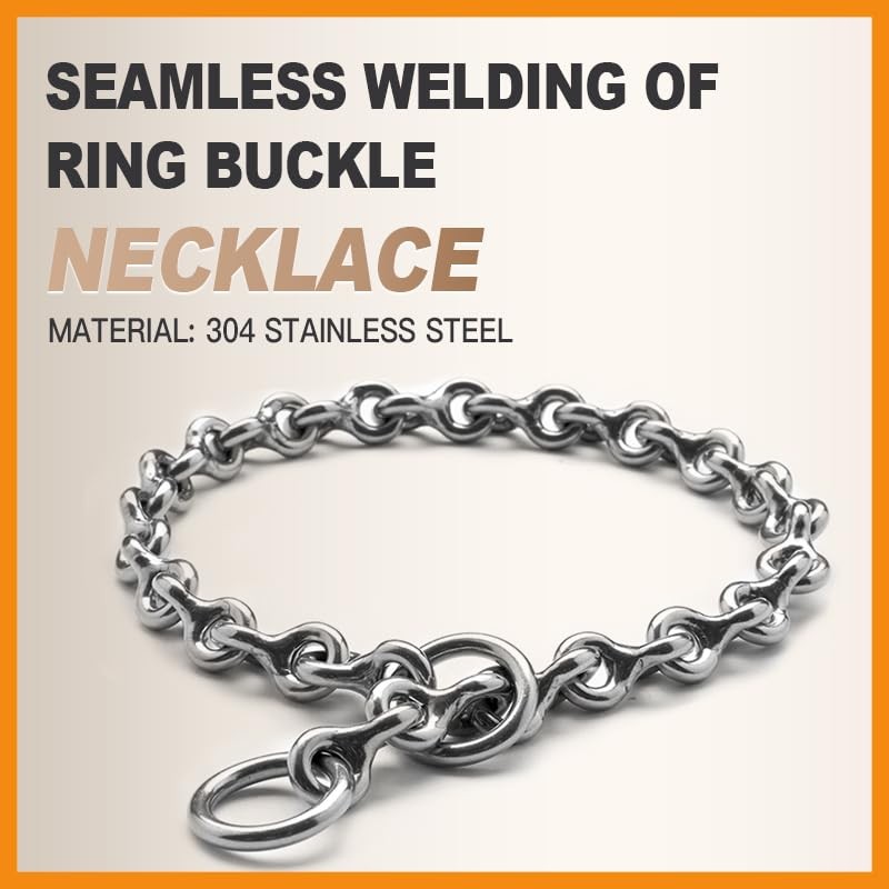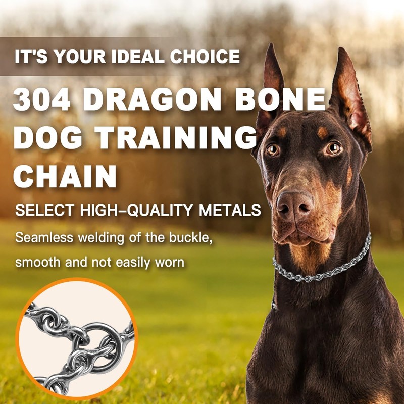 Functional Features: 1. Ergonomic Dragon Bone Ridge Design - Strategically contoured nodules apply gentle pressure to prevent pulling while avoiding choking 2. Anti-Lunge & Anti-Pull Mechanism - Dual-control system effectively reduces sudden forward bursts and sideways dragging 3. Progressive Training Technology - Gradual pressure adjustment adapts to training phases (from basic obedience to advanced behavior correction) 4. Comfort Design - Polished chain body reduces neck friction while maintaining responsive control Technical Attributes: - Material Composition: 304 Stainless Steel - Durable & Rust-Resistant - Adjustability: 3-step quick-adjust dual line with 15-27" neck range (XS-XXL), suitable for multiple dog sizes - Waterproof Performance: Stainless steel construction, washable design for easy daily cleaning