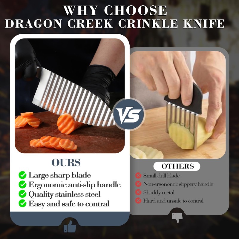 Dragon Creek Crinkle Cutter Knife - Wavy Chopper Potatoes Crinkle Fry Cutter for Vegetable Fruits Fun Carrot Chip Slicer Gift Idea Stainless Steel