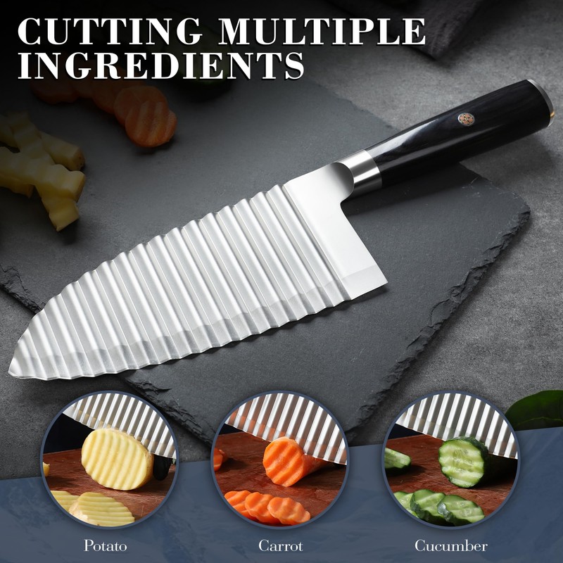 - Engineered for Effortless Cutting – Angled Potatoes Crinkle knife blade reduces resistance for smoother slicing, while the lightweight yet sturdy design minimizes hand fatigue during prolonged use.
