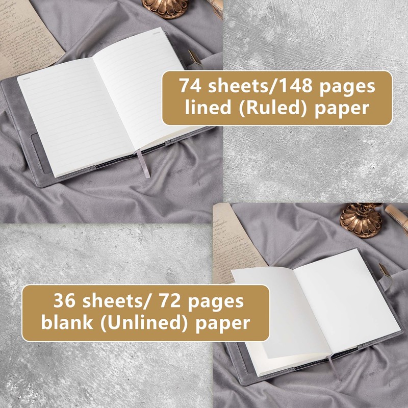 - REFILLABLE NOTEBOOK: 110 sheets / 220 pages 100gsm acid-free fountain-friendly Writing Paper, protects eyes from harm, 74 sheets lined (Ruled) paper, 36 sheets blank (Unlined) paper, no ink-seepage, SILKY SMOOTH, inner paper can be easily refilled, leather cover can be reused. The internal design of the card slot, photo slot, pen loop, marking rope, to meet your diverse needs, excellent travel notebook, business/executive/office journal, school notebook, recipe journal, etc.