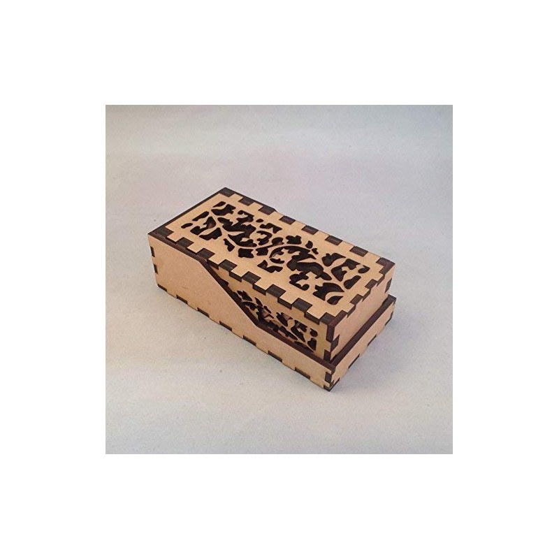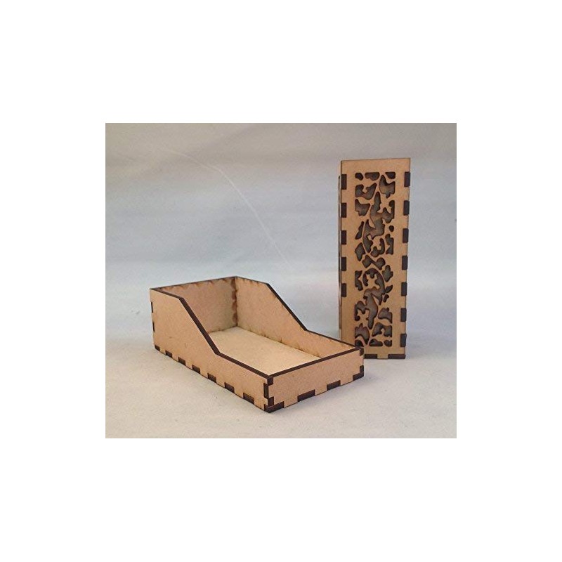Mini Dice Tower and Tray. ---- These custom mini dice towers are compact and portable. They stand approximately 5" tall and are composed of only two pieces. The first piece being the tower and the second component is the tray. Each dice tower is laser cut from a high quality MDF material. This dice tower is designed in such a way that you can place your dice inside the tower and then fold it up for transport. Works best with dice 16 to 20mm. These towers are offered in a variety of designs and colored acrylic windows. We will be adding more designs on a regular basis. Dice towers are great for board or dice games and make great gifts for gamers or people who are hard to buy for.