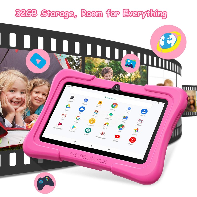 Dragon Touch Kids Tablets with 32GB Storage, 2GB RAM, 7 inch IPS HD Display, Android 12, Quad Core Processor, Kidoz Pre Installed with Kid-Proof Case, Wi-Fi only - Pink
