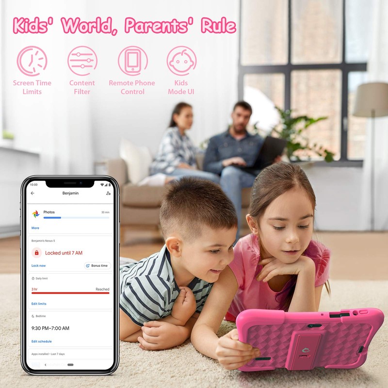 - Easy-to-use Parental Control: Filter and select content for your kids to keep them safe and set screen time limits to keep them healthy. With 2 parental control apps: Family Link and KIDOZ. Create separate profiles, customize content, and track activities for each kid.