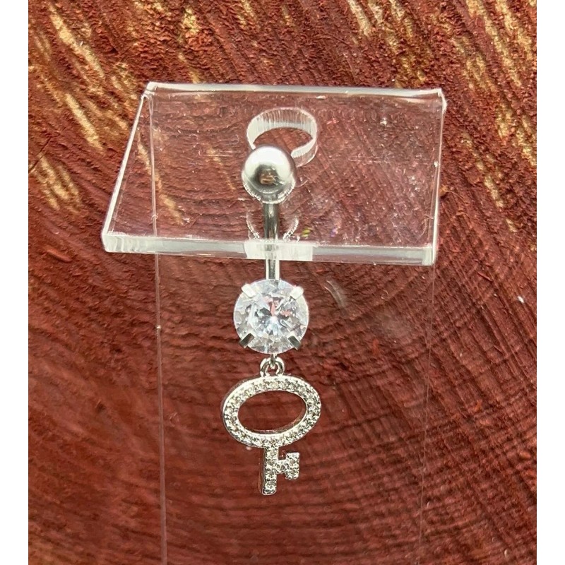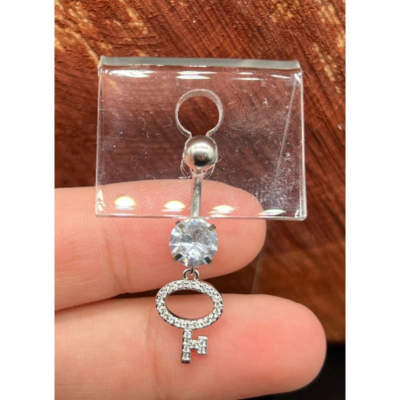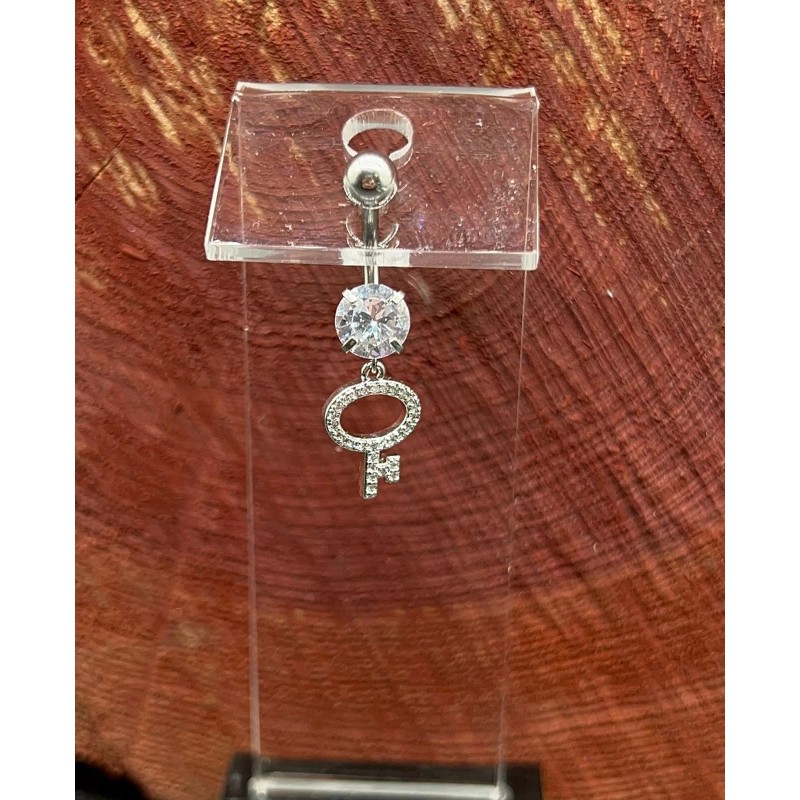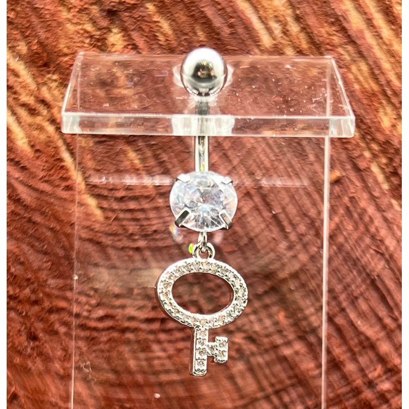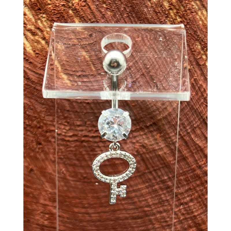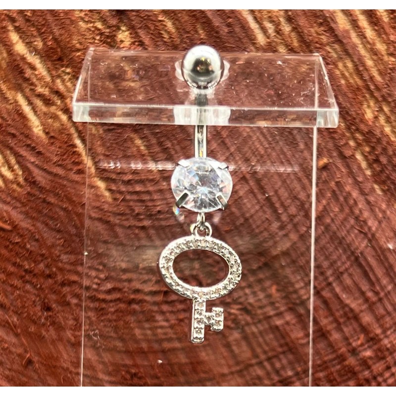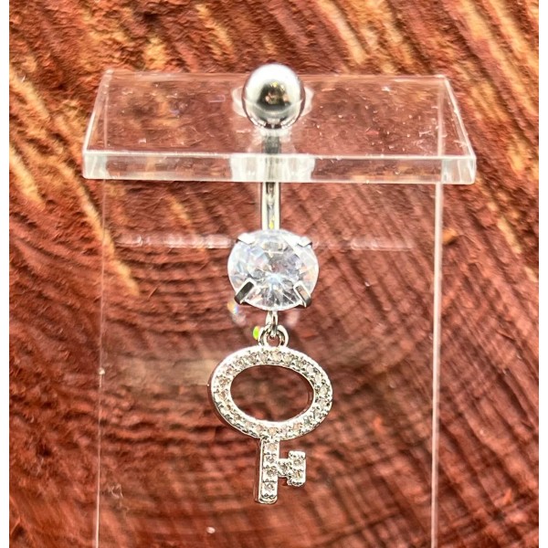 - 14 Gage Key of Love Belly Button Ring Stainless Steel Cubic Zirconia