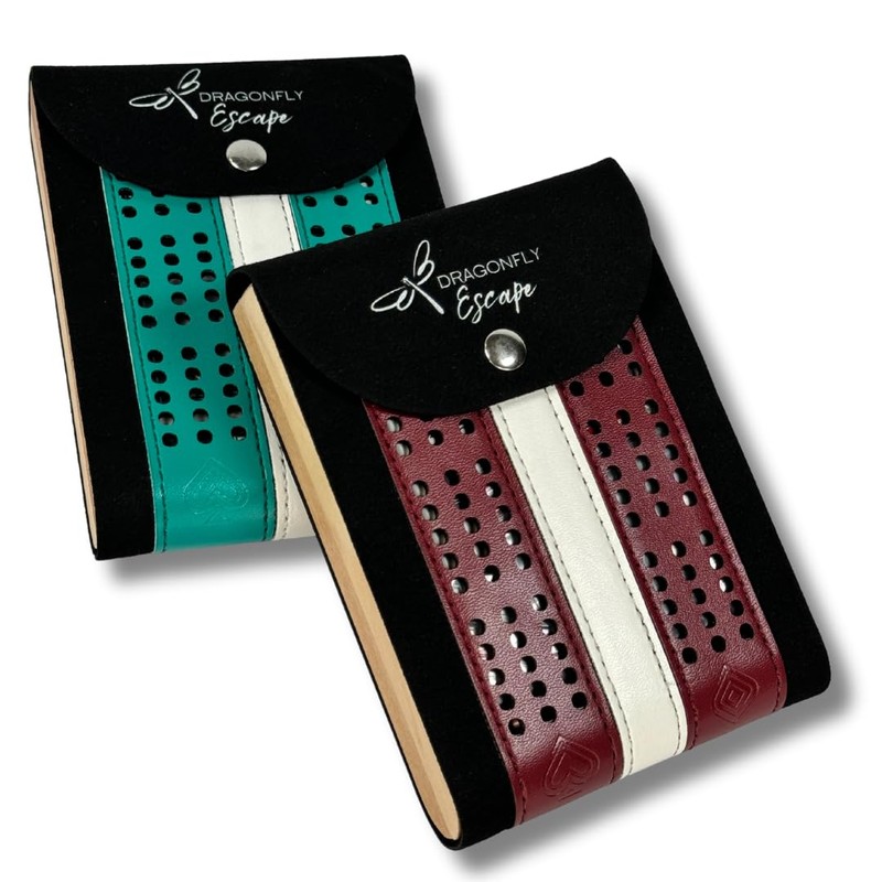 Dragonfly Escape Folding Travel Cribbage Game | Unique Lightweight Cribbage Board | Travel Cribbage Board | Portable Travel-Size Cribbage Set (Wine & White)