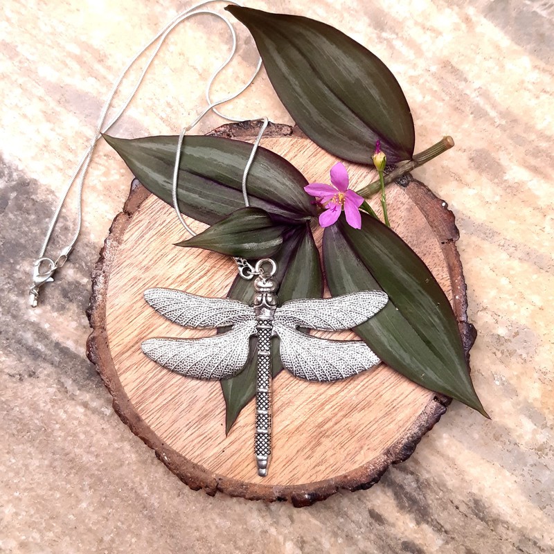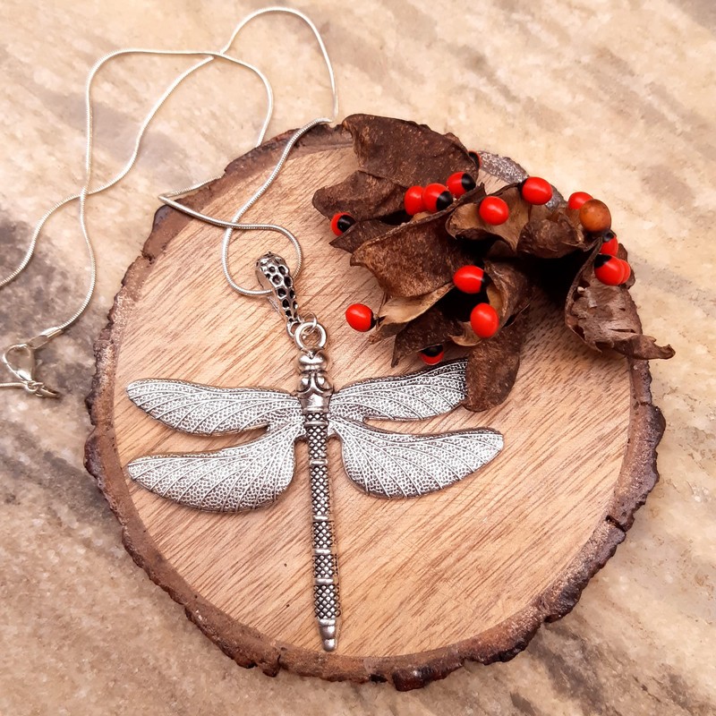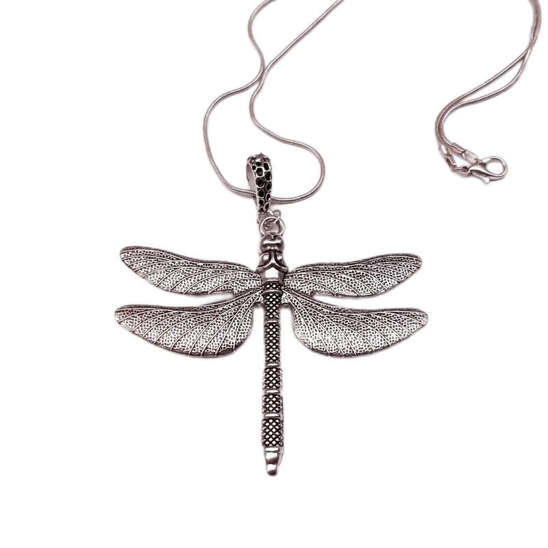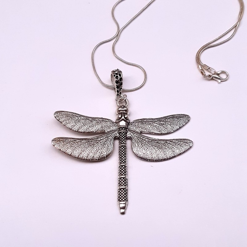 Dragonfly Pendant Necklace 3 1/2 x 3 inches with 18 inches silver plated chain