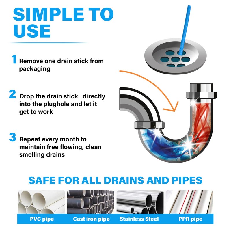 - ✅ EFFECTIVE - Drain sticks help to prevent the gradual build up of blockages and bad smells in kitchens and bathrooms! Regular use will help you keep your drains free flowing and smelling clean!