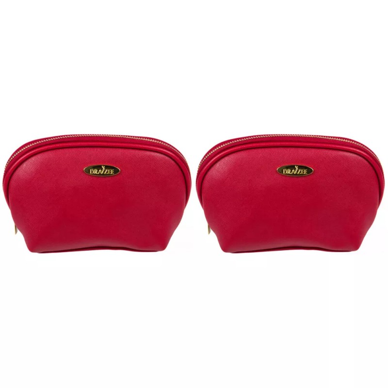 Draizee 2-Pack New Deep Red Draizee Fashion PU Leather Cosmetic and Travel Accessory Bag