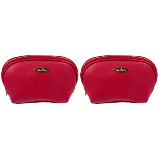 2-Pack New Deep Red Draizee Fashion PU Leather Cosmetic and Travel Accessory Bag