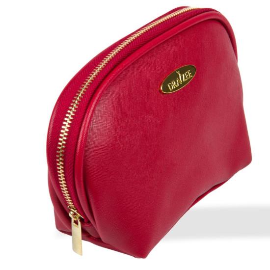 Deep Red Fashion PU Leather Cosmetic and Travel Accessory Bag with Large Interior and Zipper Top by Draizee DESIGN: This fine piece sports a modern design that starts wide at the base and tapers as it reaches the top. A large, smooth zipper begins halfway up one side, arches up and over and ends halfway down the other side. DIMENSIONS & QUALITY: 8.5 x 3 x 5 inches. The exterior is carefully crafted from PU leather on the outside for ultimate touch and shine, and the inside has a soft to touch polyester lining. A large 5 gauge zipper adorns the top. PERFECT SIZE & SHAPE: On the inside, it is big enough for all your basic needs such as keys, sunglasses, phone, passport, mascara, lipstick, and more! When you have your purse, it can easily fit inside for simple carrying. DRAIZEE QUALITY: The Draizee brand is a badge, one that signifies quality and superb customer support. When you see the Draizee logo, you know your purchase is one you can stand behind. This item backed by a 1 year guarantee. ALL IN 1: This quality made bag is the only one you?ll need! Whether using it as a cosmetic case, makeup organizer, accessories and travel pouch or even for art supplies, it will be up for the job while making you look stylish at the same time! The perfect organizer!
