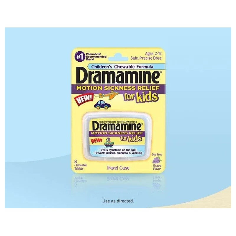 Dramamine Childrens Motion Relief Grape 8 comprimidos - Producto Original de Alta Calidad, Entrega Rápida y Segura, Garantía Incluida