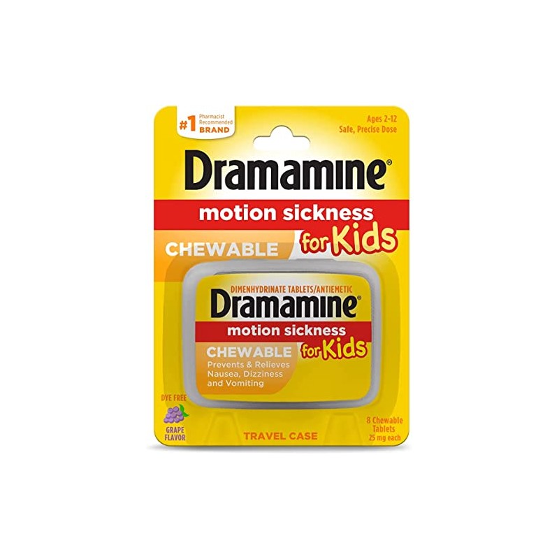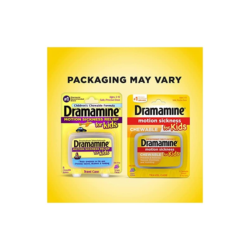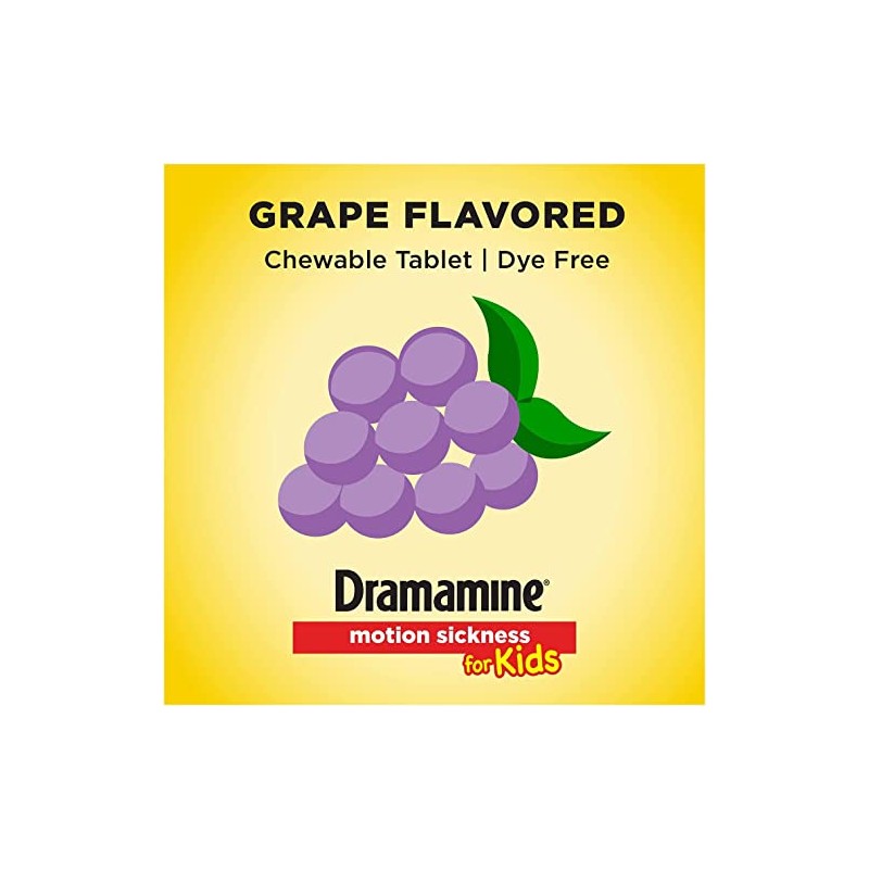 - Dramamine Motion Sickness Relief for Kids, Grape Flavor, 8 Count (3 Pack)
