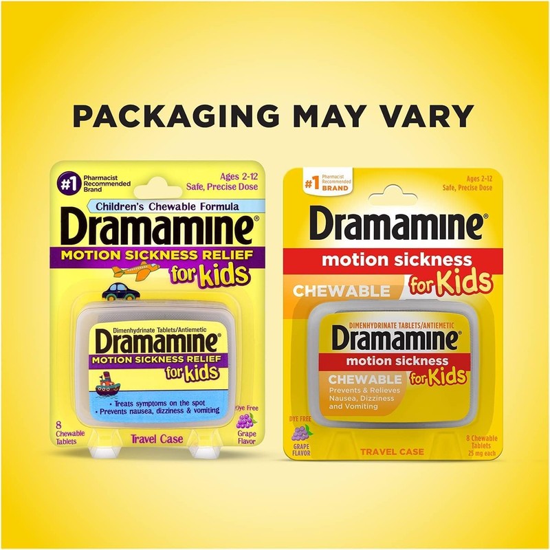 Dramamine Motion Sickness Relief for Kids, Grape Flavor,8 Count (Pack of 2)