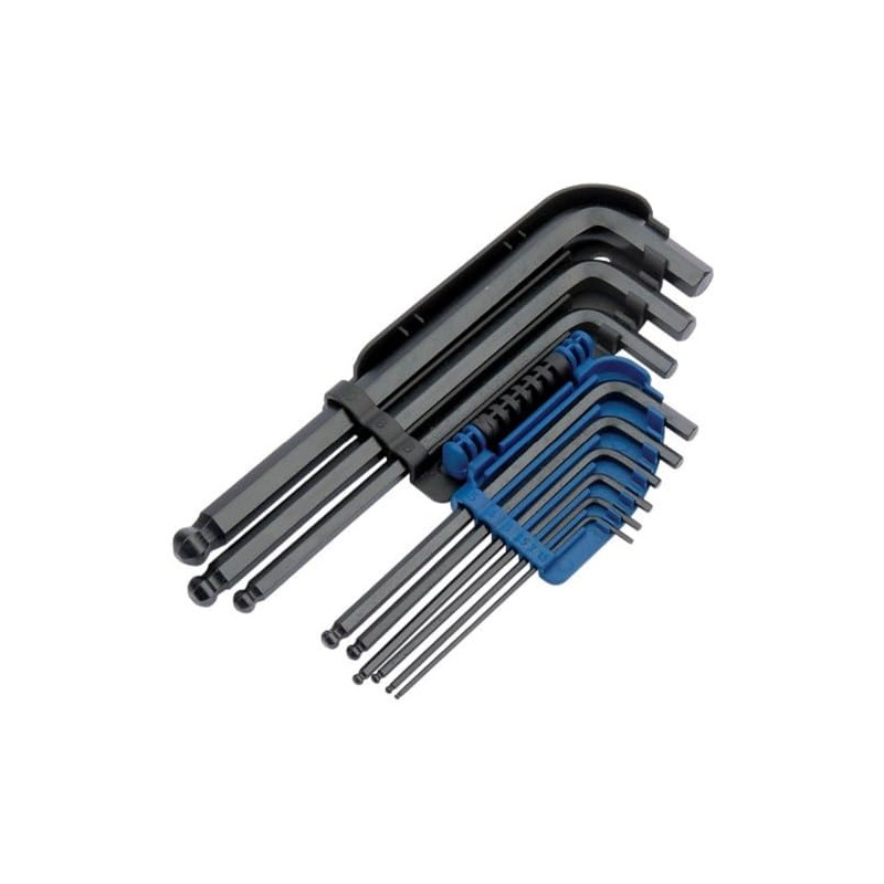 - Hexagon keys with ball end on the long arm and conventional ends on short arm. The ball type hexagon tip allows the hexagon key to be used up to 30° angle from the screwhead recess. Manufactured from chrome vanadium steel that’s hardened and tempered then applied with a chemically blacked finish. Supplied in fold-out easy release holder which can be wall-mounted.