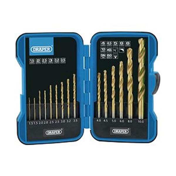 Draper 18549 Titanium Nitride Coated HSS Drill Bit Set, 1.5mm - 10mm, 15 Pcs
