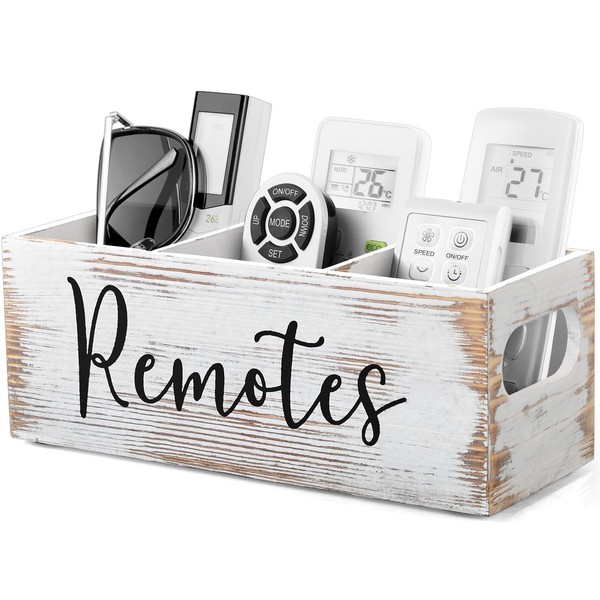 - Simple & Cute Design: Wooden remote organizer with handle and cute font design. The simple style of the white remote caddy is suitable for all kinds of home decorations, it adds aesthetic to the room