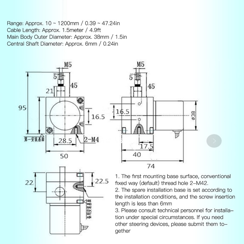Draw Wire Encoder Pulse Stroke Optional Incremental Cable Switch Dia 38mm 10‑1200mm Range DC8‑24V