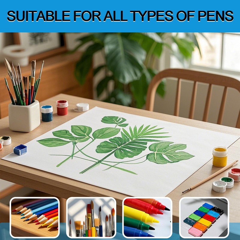 - Compatibility: The paper roll is compatible with various art materials, including acrylic, oil painting, crayons, markers, fine tipped pens, watercolors, and colored pencils, effectively preventing pigment penetration and protecting your work surface