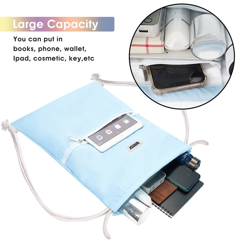 • THICKENED DRAWSTRINGS FOR COMFORT --- Thick drawstrings prevent digging into your shoulders and help reduce your shoulder burden. Furthermore, drawstring closure allows you to store things quickly and take them in and out easily.
