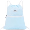 Drawstring Backpack String Bag Sackpack Cinch Water Resistant Nylon for Gym Shopping Sport Yoga by WANDF (Light Blue)