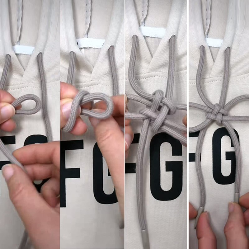 - Hoodie strings in simple colours and styles can be combined in many ways.