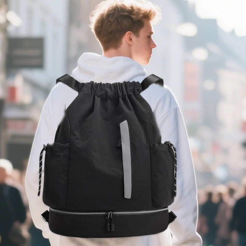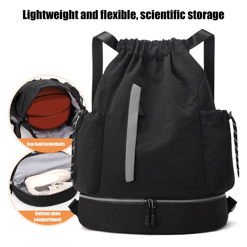 Whether you're heading outdoors or engaging in sports, this drawstring backpack delivers large capacity storage, paired with a waterproof finish, perfect for hiking, camping, mountain climbing, picnics, basketball, or football sessions. Lightweight yet sturdy, its portable nature is enhanced by an included shoe compartment for versatile organization.