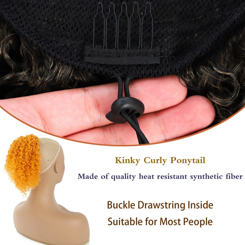 Drawstring Ponytail for Black Women Short Kinky Curly Ponytail Extension for Black Women Natural Black Curly Ponytail Extension for Black Women Kinky Curly Human Synthetic Hair Ponytail Extension (light orange)