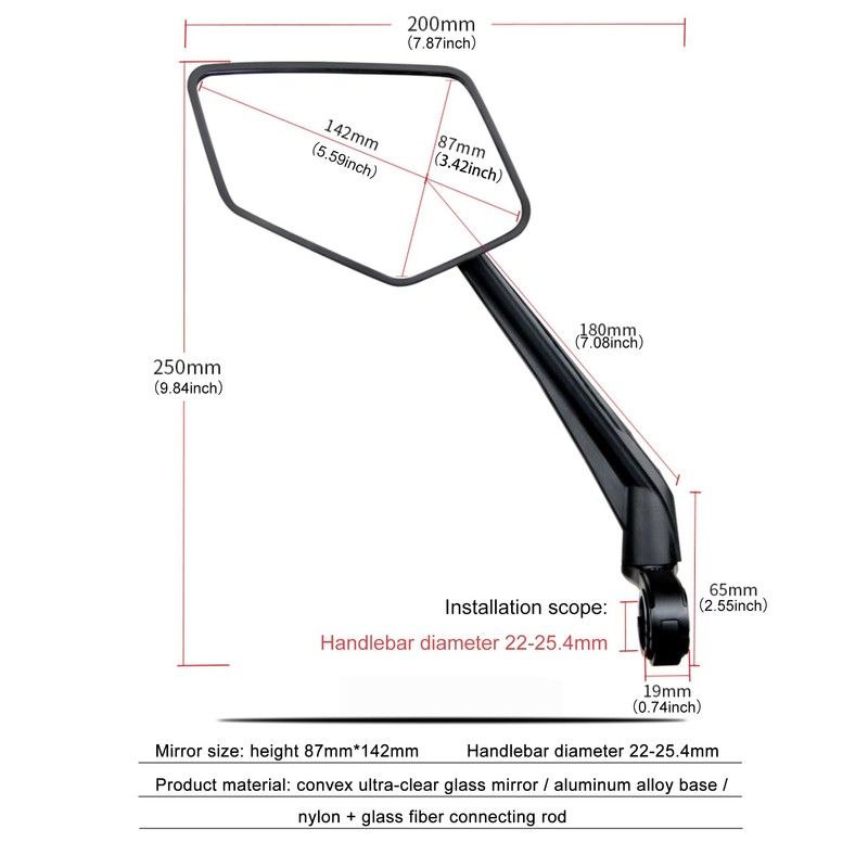 • 【Install and Bike Choose】This e-bike mirror install to the Handlebar handlebar diameter 20-25mm(0.8-1inch), sometimes Need move break/ gear leaver slightly to get bracket close to hand grip keep the 20mm to install the handlebar clamp. suitable for mountain bike, e-bike ,hybrid bike, Scooter(not suitable for road bike )
