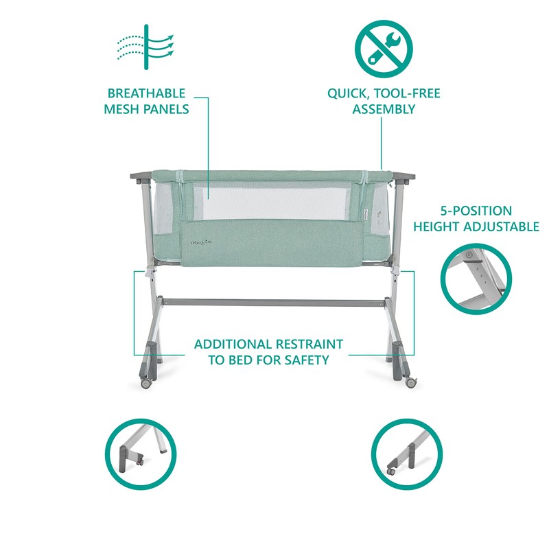 - CONVENIENT FEATURES: Enjoy a quick tool-free assembly. The sturdy strap system allows you to easily secure the bassinet to your bed frame. Lightweight and mobile, enough to move from room to room for convenience