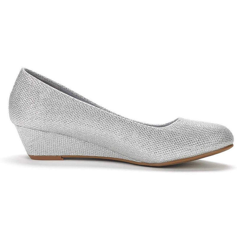 DREAM PAIRS Women's Debbie Mid Wedge Heel Pump Shoes,Size 10,Silver/Glitter,Debbie