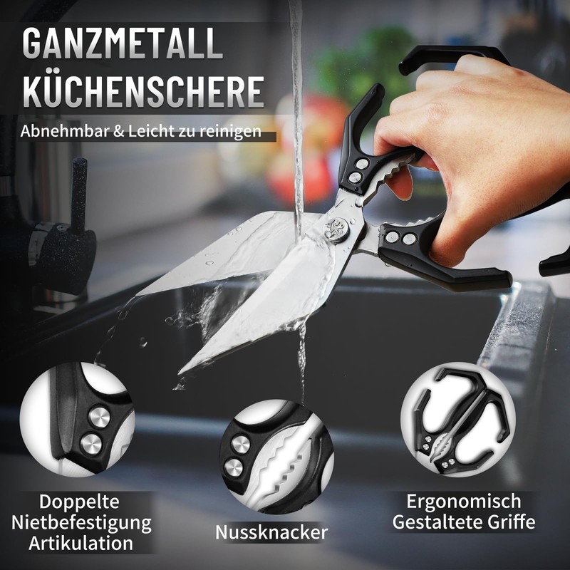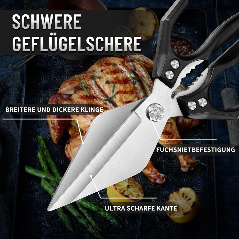 - Large, sharp and durable blades - Made of high-quality stainless steel, the blades stay sharp, rust-proof and are easy to clean and bone scissors dishwasher safe. Its high hardness ensures a long service life.