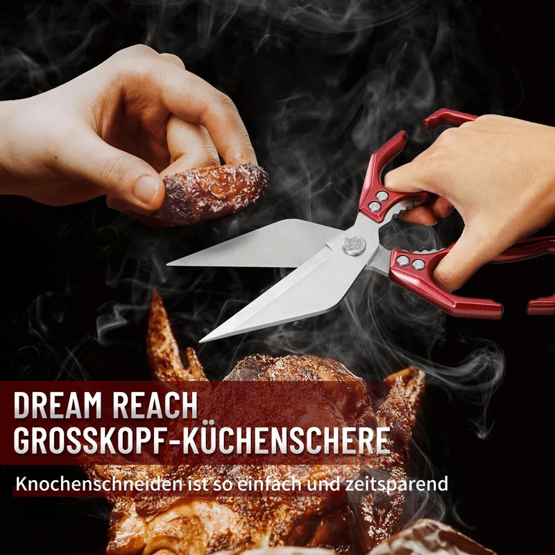 Dream Reach Sharp Poultry Scissors - Red Bone Scissors with Serrated Edge - Multi-Purpose Kitchen Scissors for Mother's Day - Stainless Steel Chicken Scissors Dishwasher Safe
