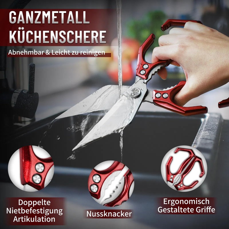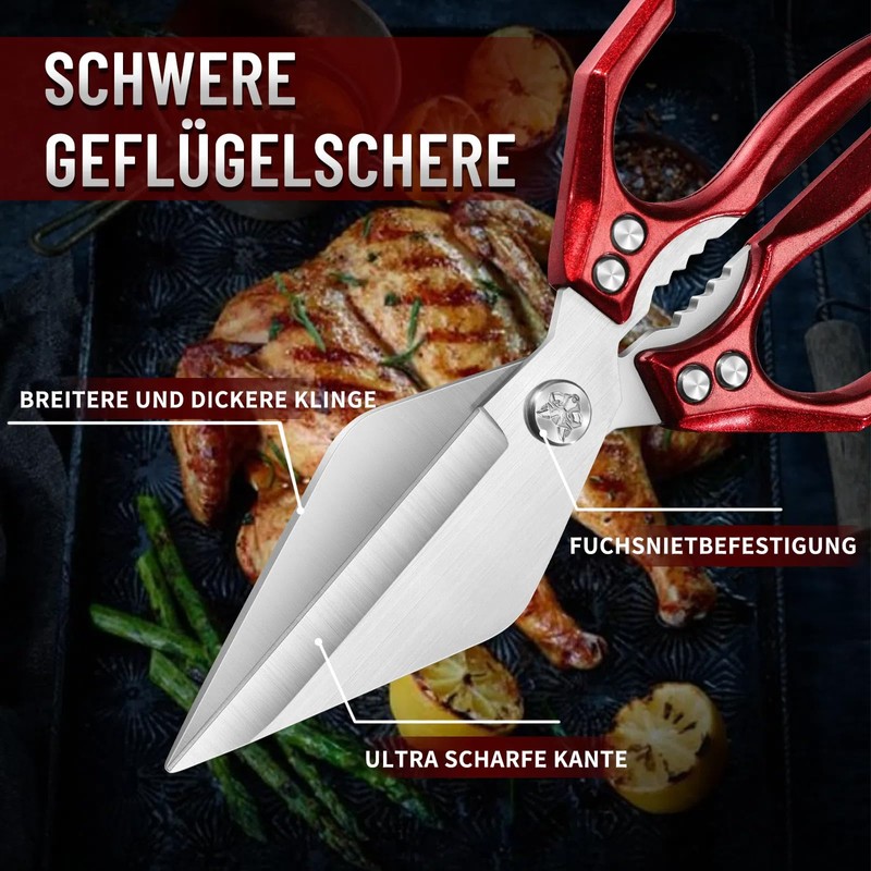 - Large, sharp and durable blades - Made of high-quality stainless steel, the blades stay sharp, rust-proof and are easy to clean and bone scissors dishwasher safe. Its high hardness ensures a long service life.