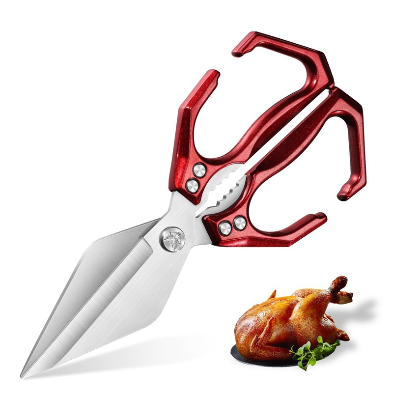 Dream Reach Sharp Poultry Scissors Bone Scissors - Multi-Purpose Kitchen Scissors for Mother's Day Chicken Scissors Stainless Steel Red